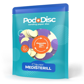 Nakładki ścierne tarcze wymienne PodoDisc Medisterill Clavier do pedicure gradacja 20mm, 150 grit, 50szt